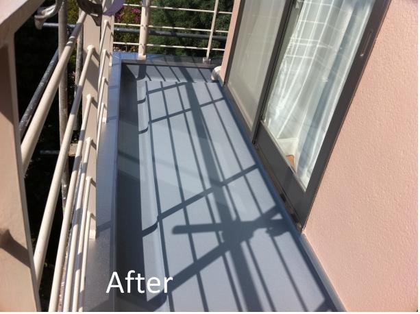 白い部分が下塗りです。下塗り材はしっかり塗膜がのるよう大事な工程となります。 |