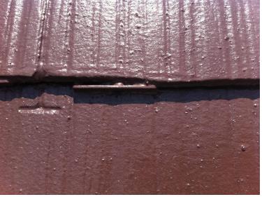 白い部分が下塗りです。下塗り材はしっかり塗膜がのるよう大事な工程となります。 |