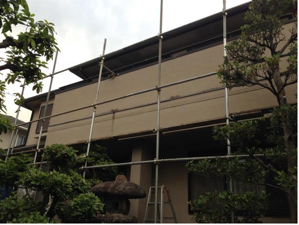 <閑静な住宅街にシックな色合い 芦屋市楠町T様邸 外壁塗装・屋根塗装の様子 > 足場架設