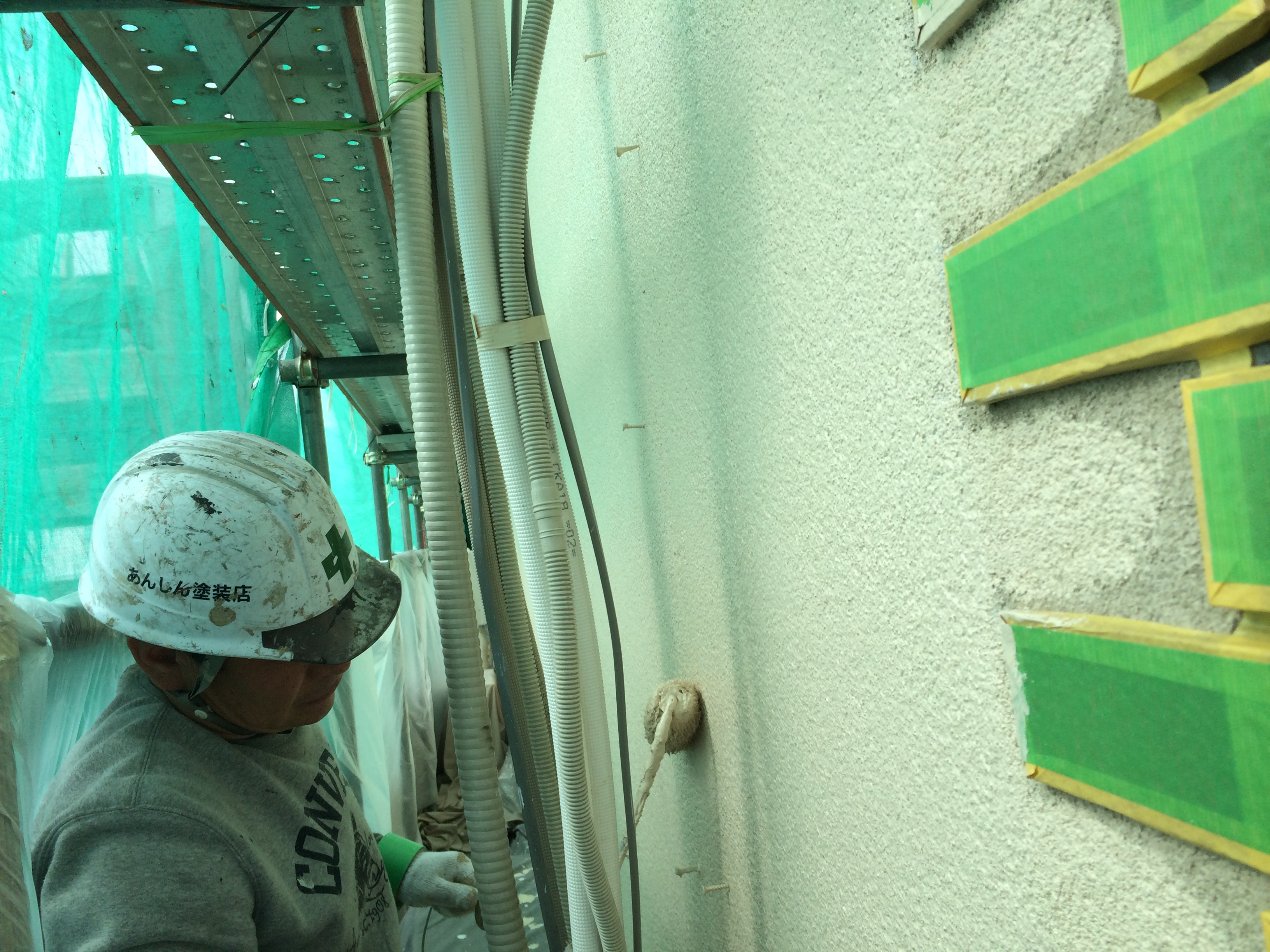 モルタル外壁の上塗り 投稿者: あんしん塗装店ペイントコバック | 2016年10月11日 0件のコメント モルタル外壁 上塗り、エアコンダクトを取りはずして塗ることで、連続塗膜となります。防水性能を保つために必要な工程です。