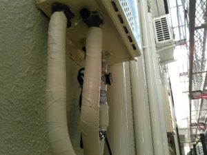 アパートメントの外壁塗装【給湯器の配管ホーステーピング】兵庫県西明石