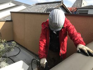 ベランダも高圧洗浄します。ベランダはこの後、遮熱塗料で塗装しますので、汚れや苔などを十分に落としておいてから塗装作業に入ります。