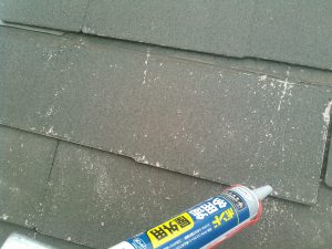 お庭が素敵なヨーロピアン風モルタル外壁のお宅にて屋根塗装前に補修を行いました。