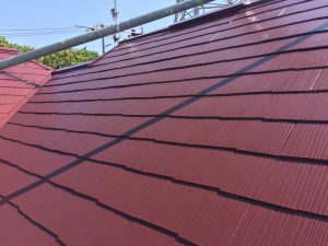 屋根補修が終わった後にさび止め、そして下塗り、中塗り、上塗りとしっかり塗っていきます。