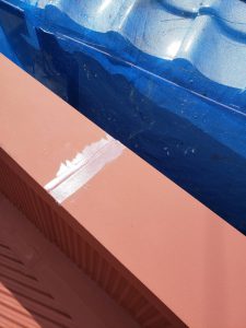 金属のジョイント部分はコーキングで防水処理を行います。このつなぎ目部分は雨水が一番入りやすい部位なので防水処理はキッチリと行います。
