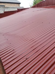 金属外壁、金属屋根なので、サビ止めを下塗りします。