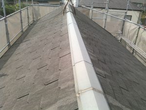 屋根のカラーベストの色が剥げて、塗膜の劣化が起こっています。
