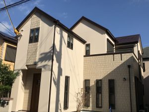 芦屋市大東町でレンガの素敵なヨーロピアンスタイルのお家の塗装です。