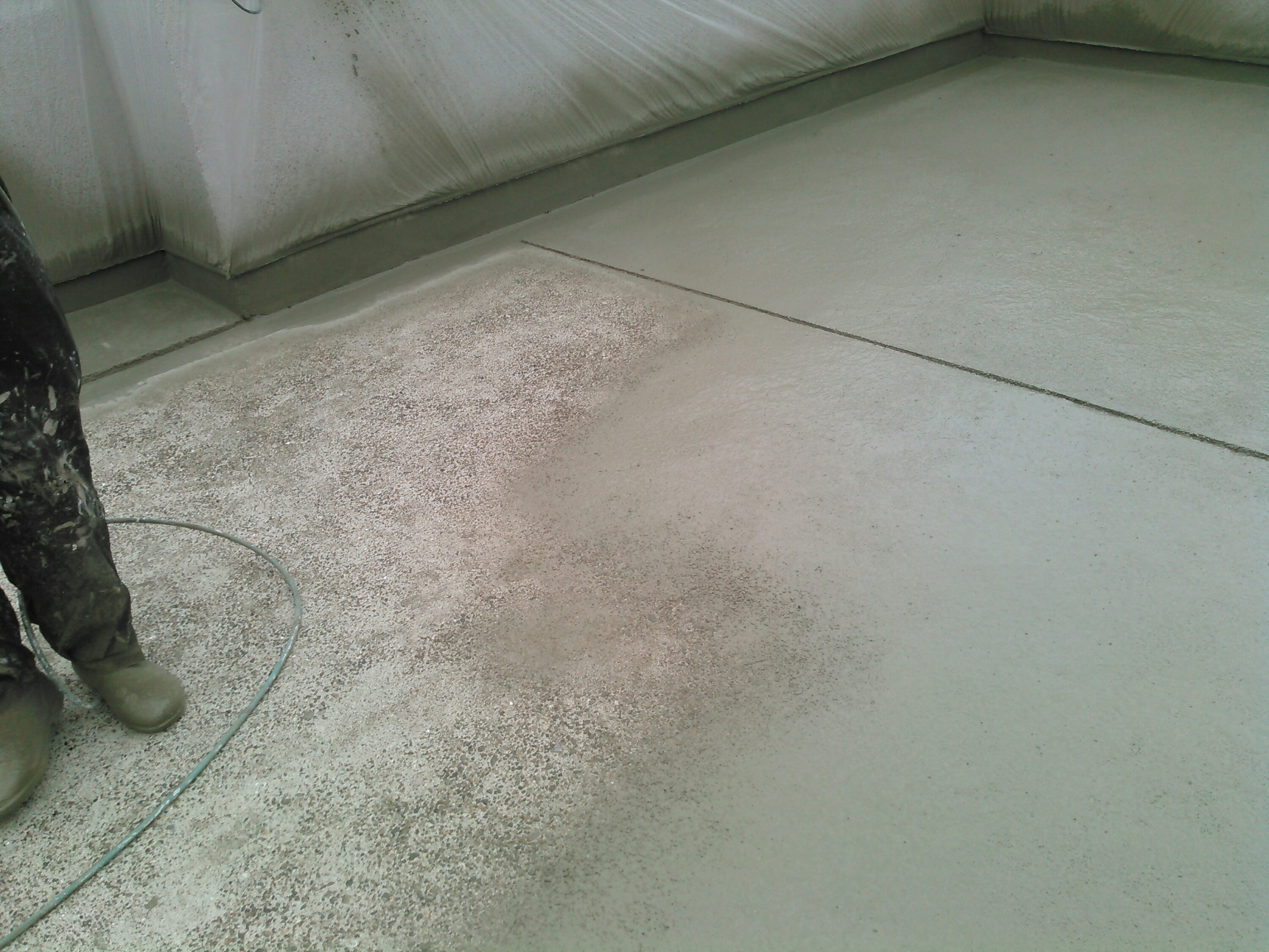 あらかじめ高圧洗浄しきれいになった屋上スラブ。