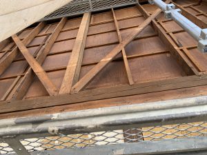 土壁補修しています。時には外壁の壁面が崩れ落ち、その下地から補修しなければならない事があります。それは経年劣化の場合もあれば、近年多い台風による被害や、その他天変地異などにより壁面が崩れ落ちる事もあります。そうした場合は当然その壁面は補修しなければなりません。壁面を取り除き、下地が腐敗している場合は土壁を補修したり、場合によって断熱材などのやり替える場合も出てきます。コバックではこうした下地補修も対応し施工させて頂いています。基本は塗装のみでふが、こういった下地からのやり直しや補修交換も可能ですので、そうしたアクシデントが起きた際は、スタッフにお申し付けください。